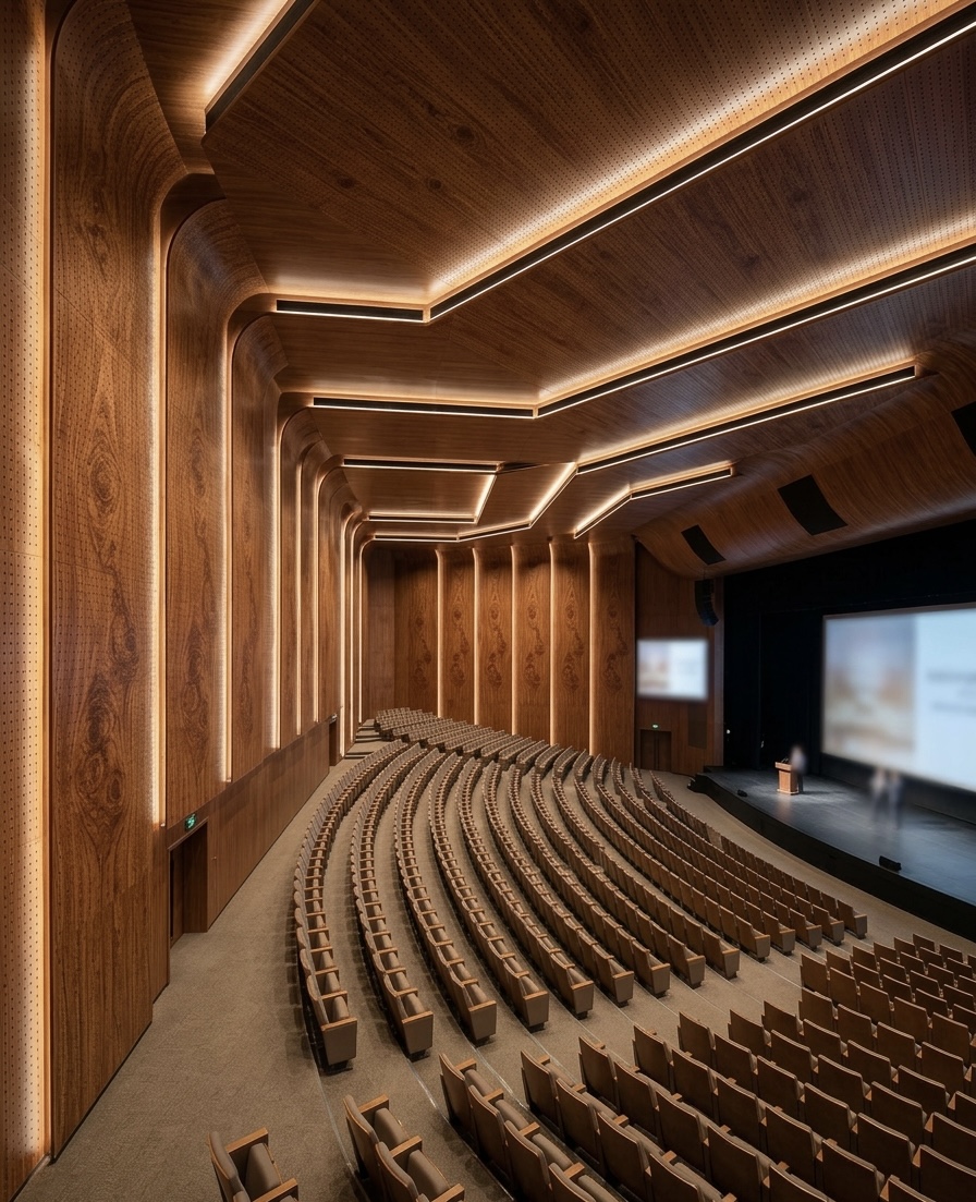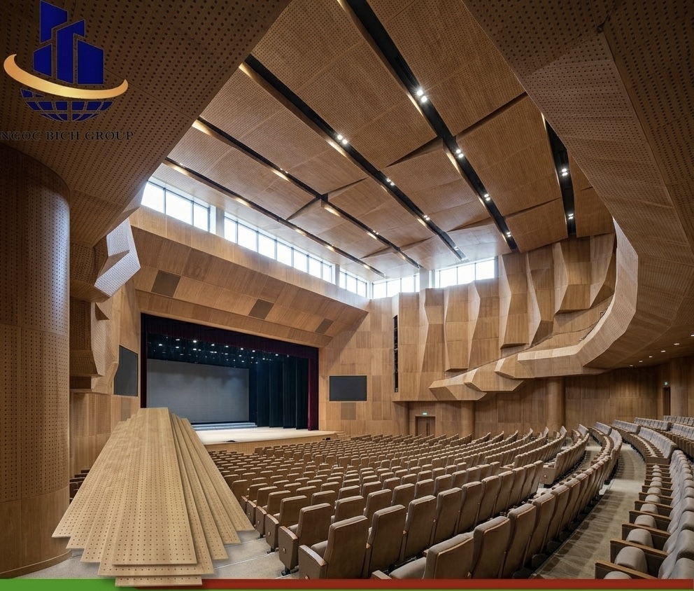 • Tiêu âm và giảm tiếng vang: Các lỗ nhỏ trên bề mặt tấm nhựa cho phép sóng âm xuyên qua và bị giữ lại hoặc phân tán trong các khoang rỗng hoặc lớp vật liệu đệm phía sau. Điều này giúp triệt tiêu tiếng vang (reverb) và làm âm thanh trong phòng trở nên trung thực, rõ nét hơn.